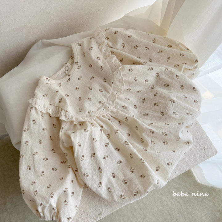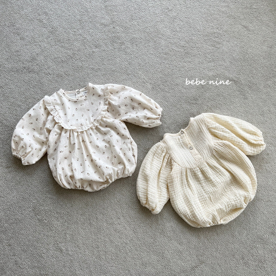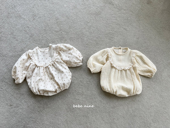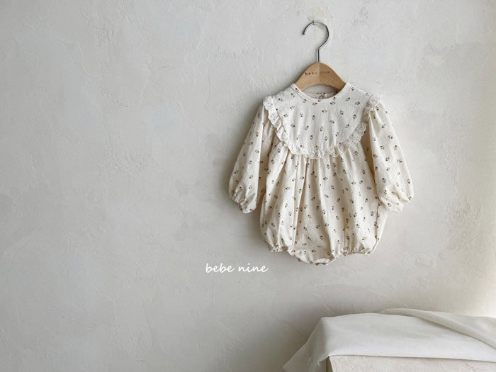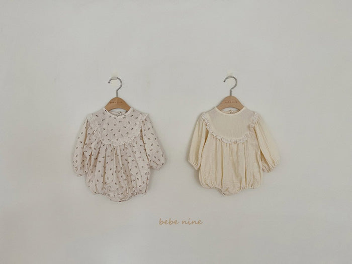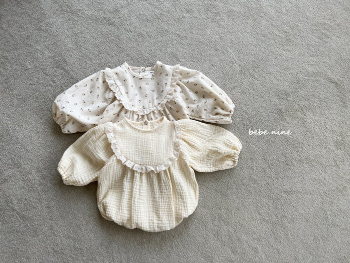 The BEBENINE Bloomette Romper offers timeless style and comfort for your little one. Available in two charming styles—one with a plain cream color and the other with an adorable floral pattern—this romper features long sleeves and delicate lace decoration. Made from high-quality materials for softness and durability. Crafted in Korea for a perfect fit and lasting quality.