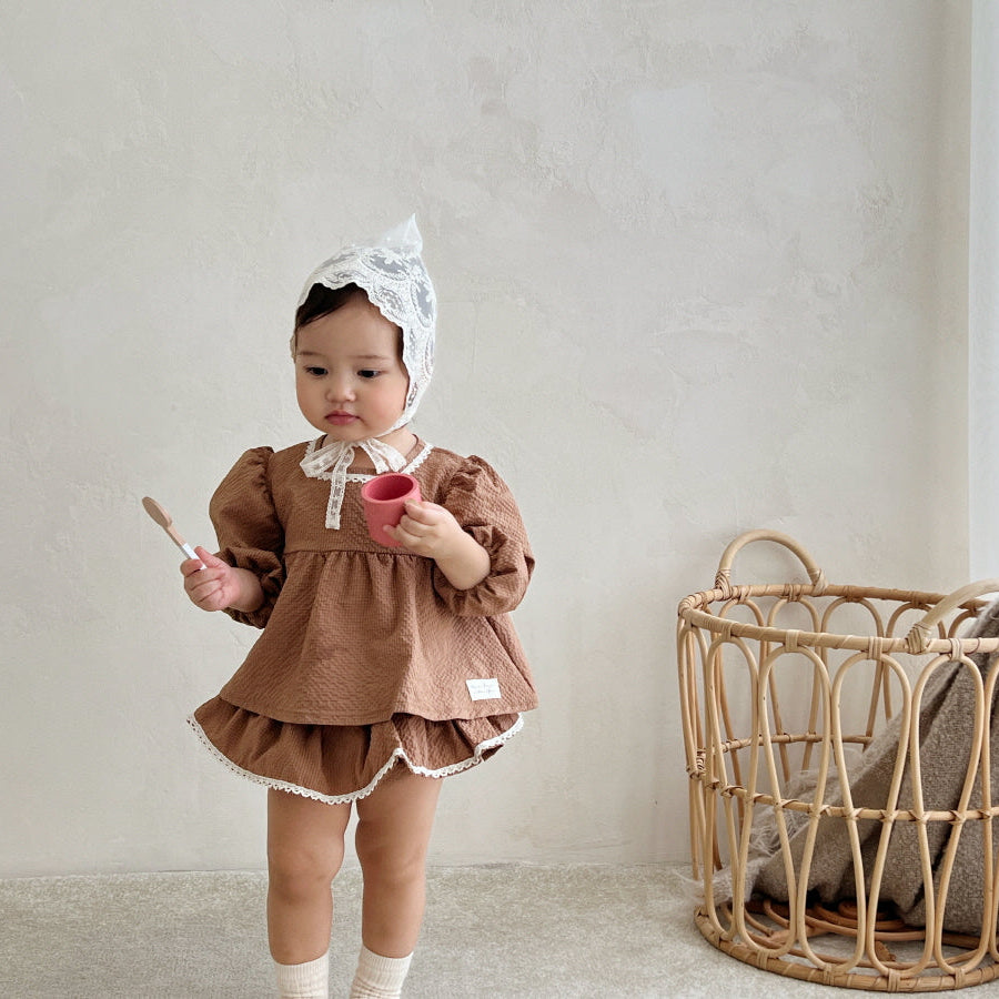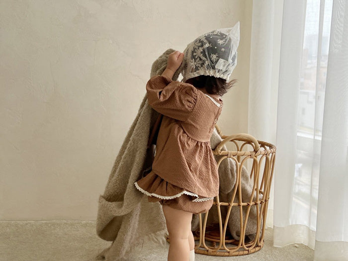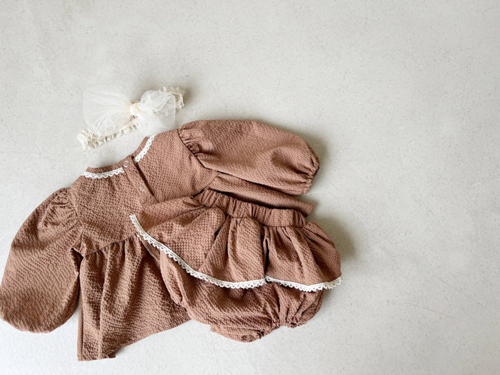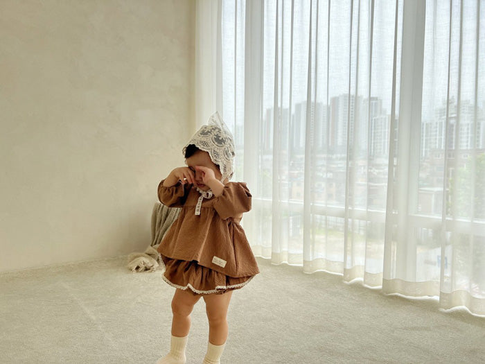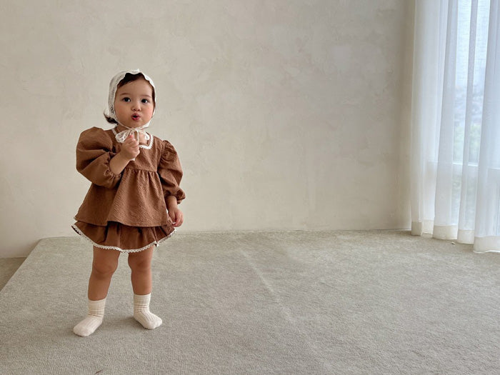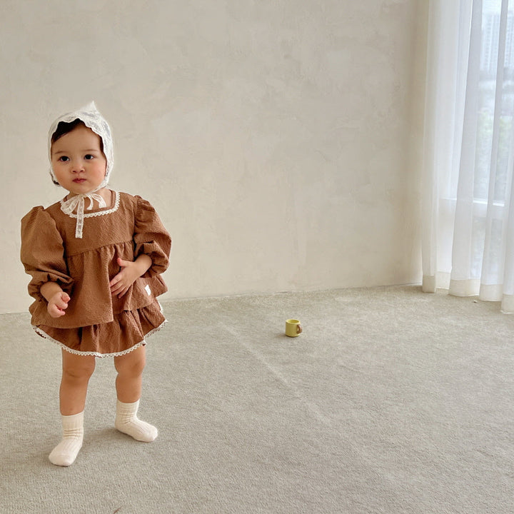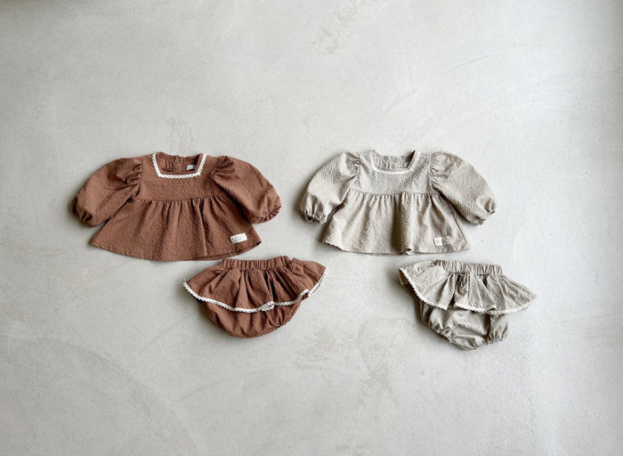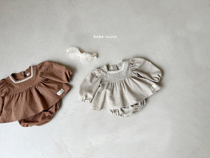 The BEBENINE Poppy Two-piece Set is the perfect combination of comfort and style for your child. Featuring a cute design with a round collar, long sleeves, and an adorable skirt, this set is available in two charming colors. Made from high-quality materials, it ensures softness and durability. The separated top and bottom design makes dressing and diaper changes a breeze. Crafted in Korea for superior quality and a comfortable fit.