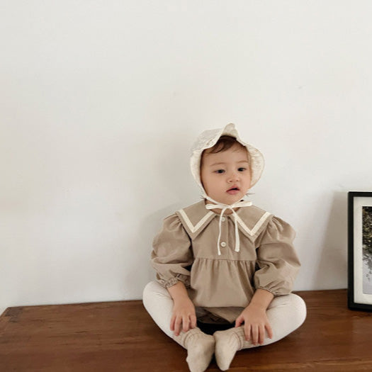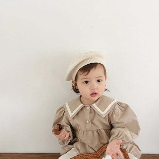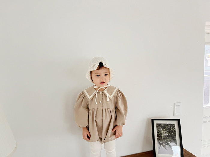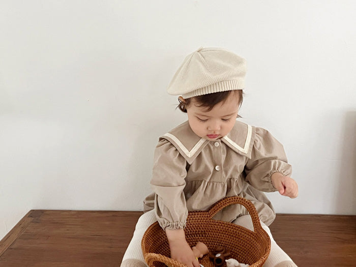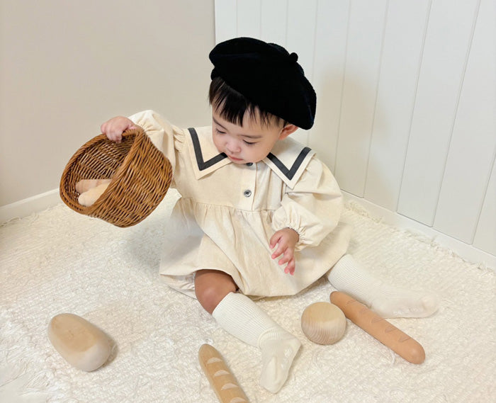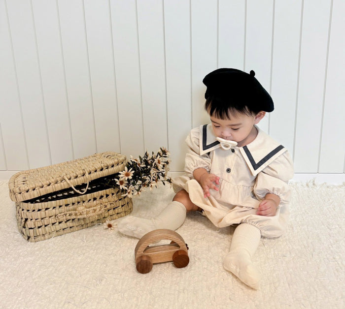 The BEBENINE Bloomette Square Collar Romper offers a perfect blend of style and comfort for your little one. Crafted from high-quality materials, this one-piece romper features a charming sailor-inspired square collar that adds a touch of elegance. Soft and comfortable, it's designed for all-day wear. Available in two adorable colors, this romper is made in Korea, ensuring premium craftsmanship and durability for your baby's delicate skin. Ideal for any occasion!