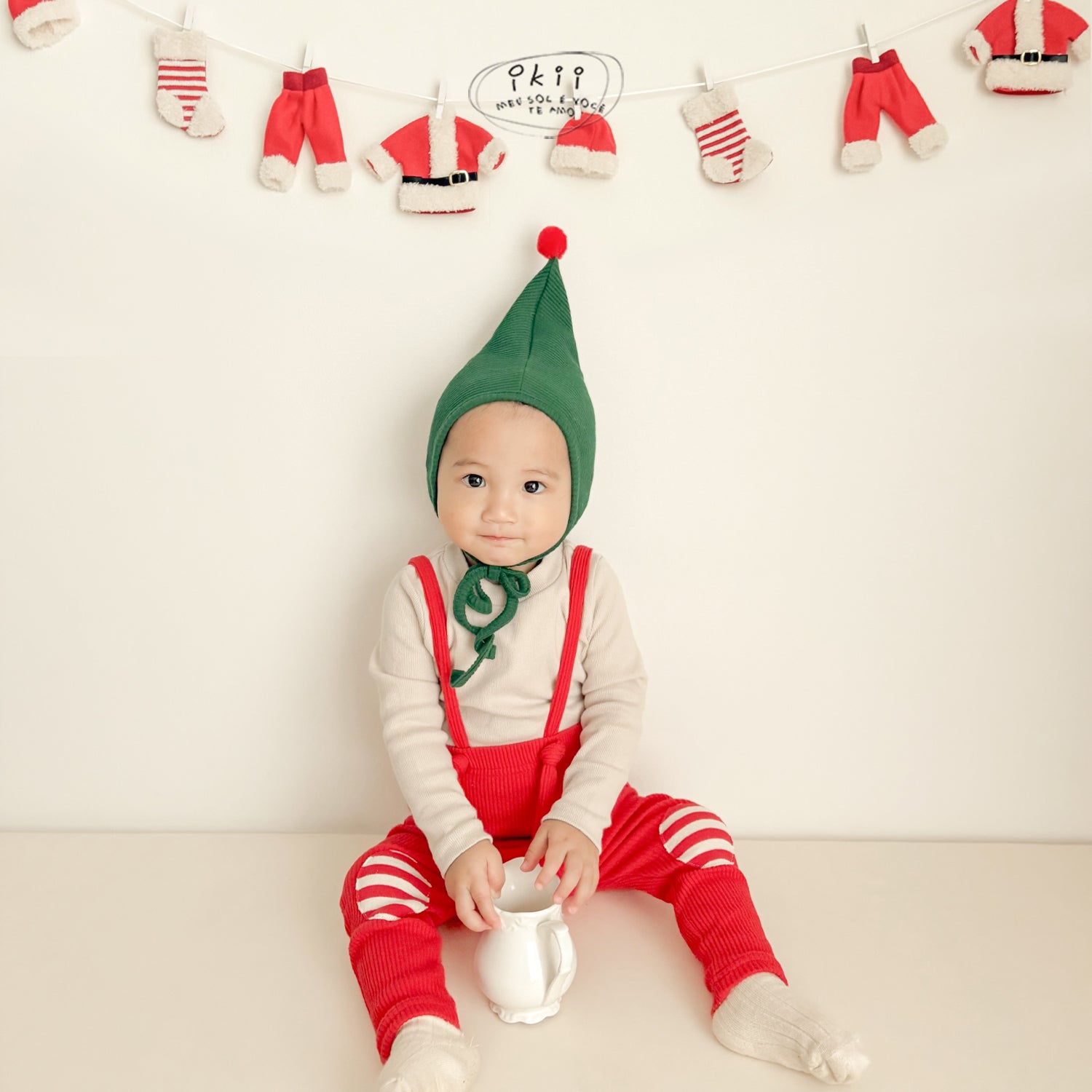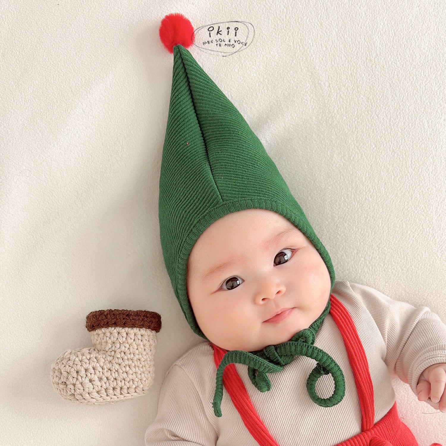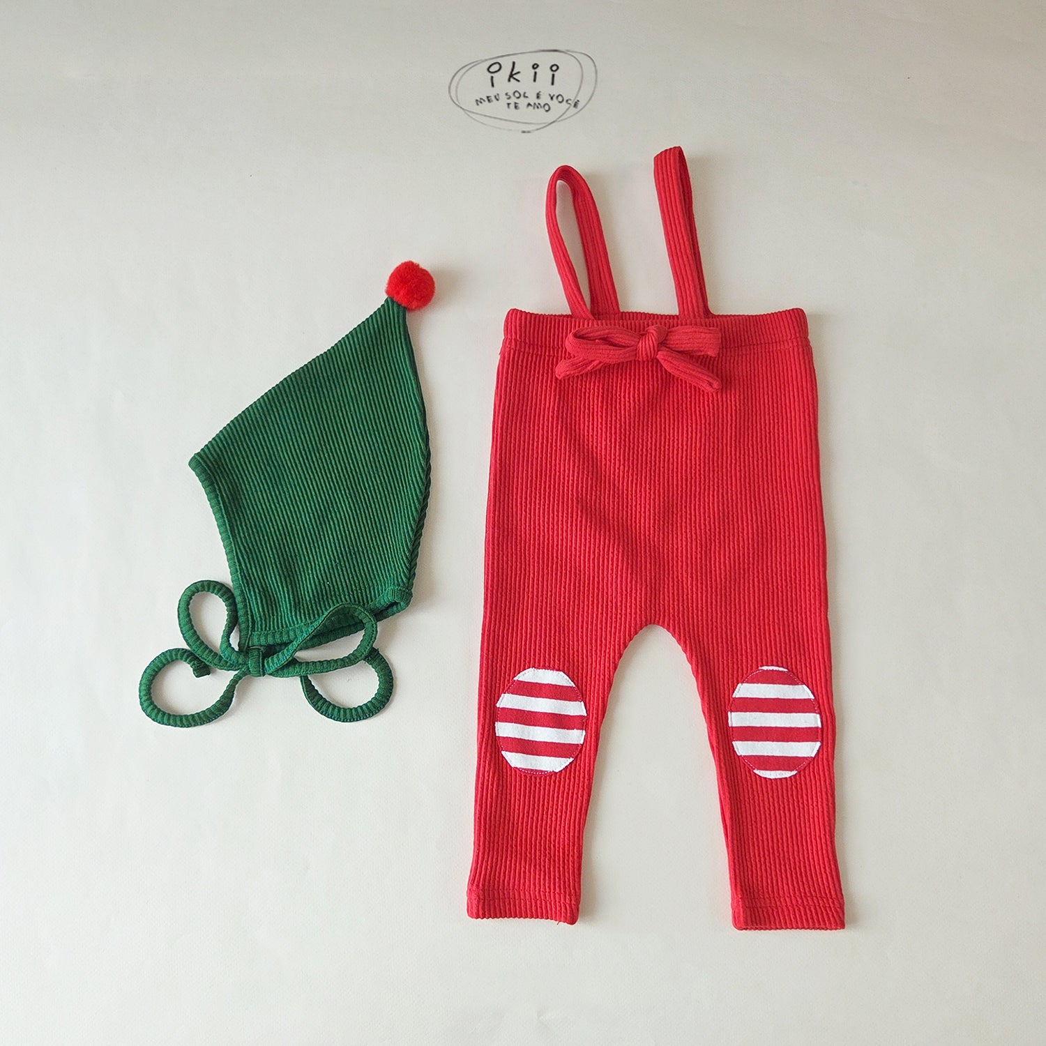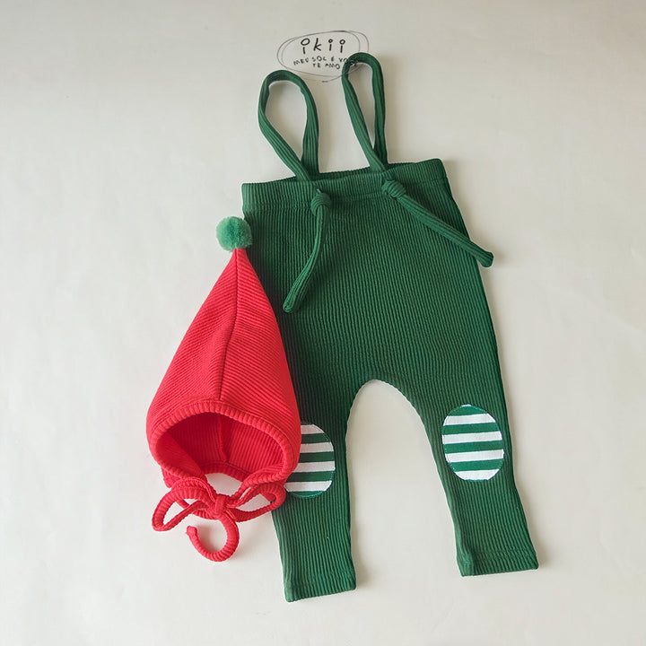 Celebrate the season with this cozy Christmas Santa set from ikii. It includes a Christmas bonnet and ribbed leggings with adjustable suspenders for a comfortable fit as your baby grows. Made in Korea from soft cotton, the fabric feels gentle on your baby’s skin while keeping them warm and comfortable all day. Thoughtfully designed with festive colors and practical details, this set is perfect for your baby’s first Christmas or winter photos.