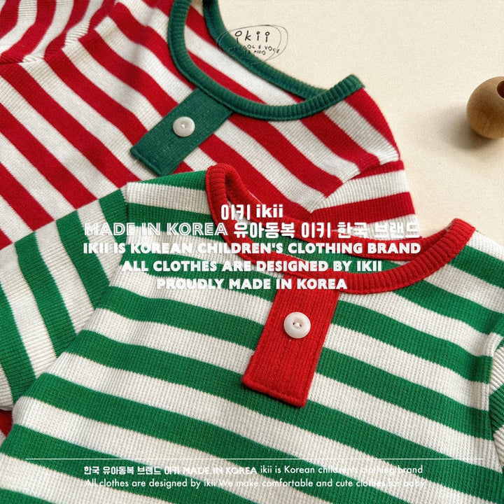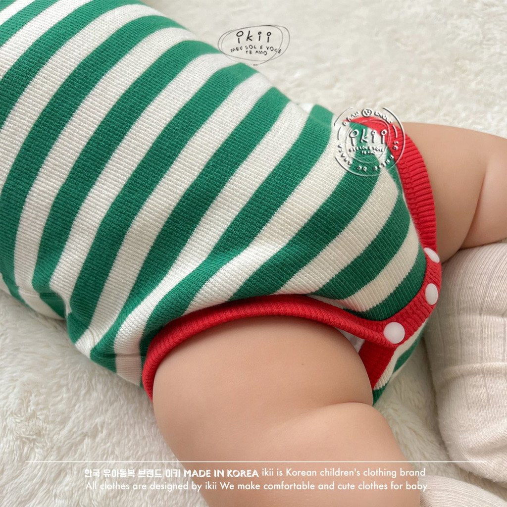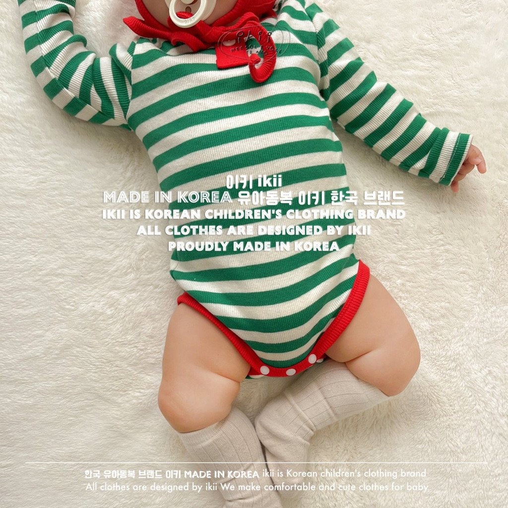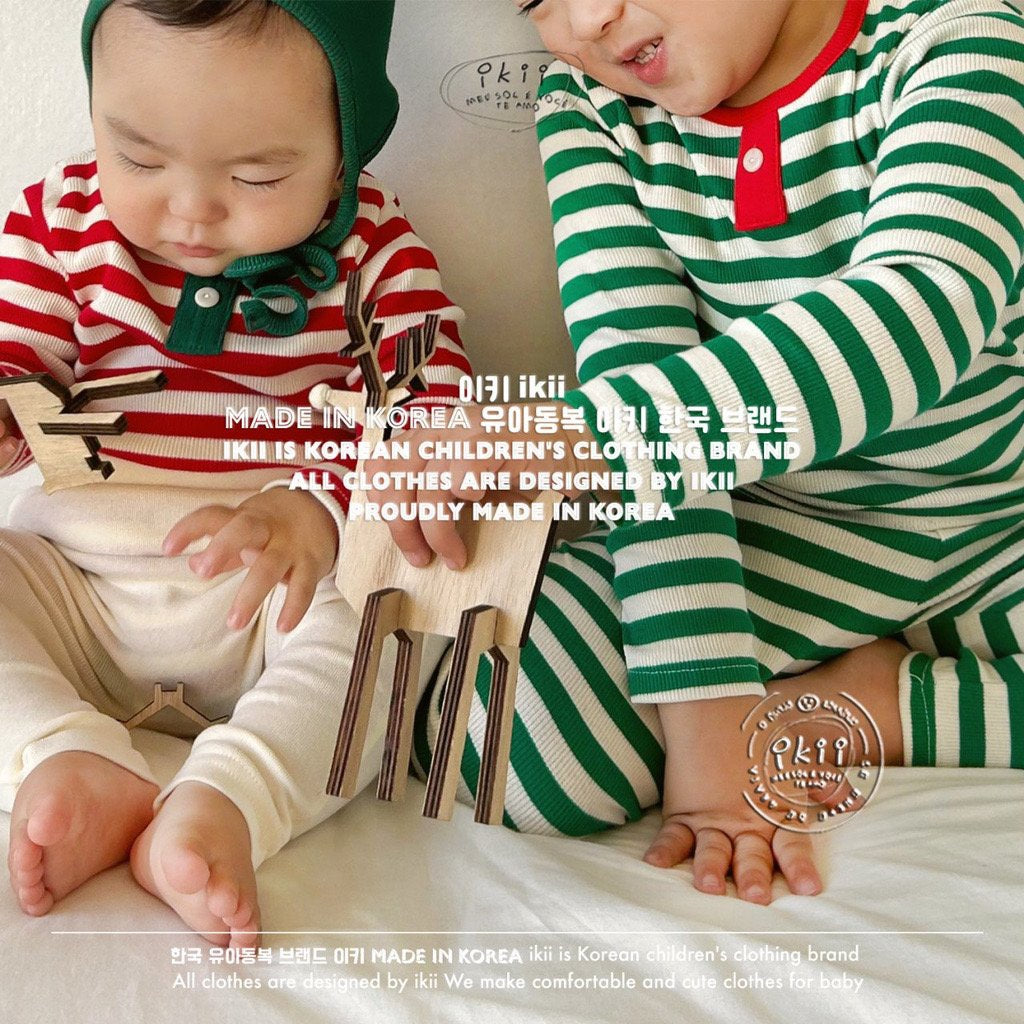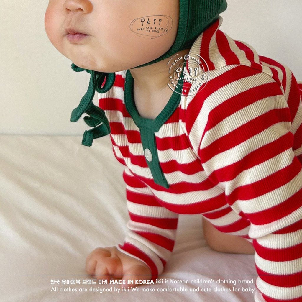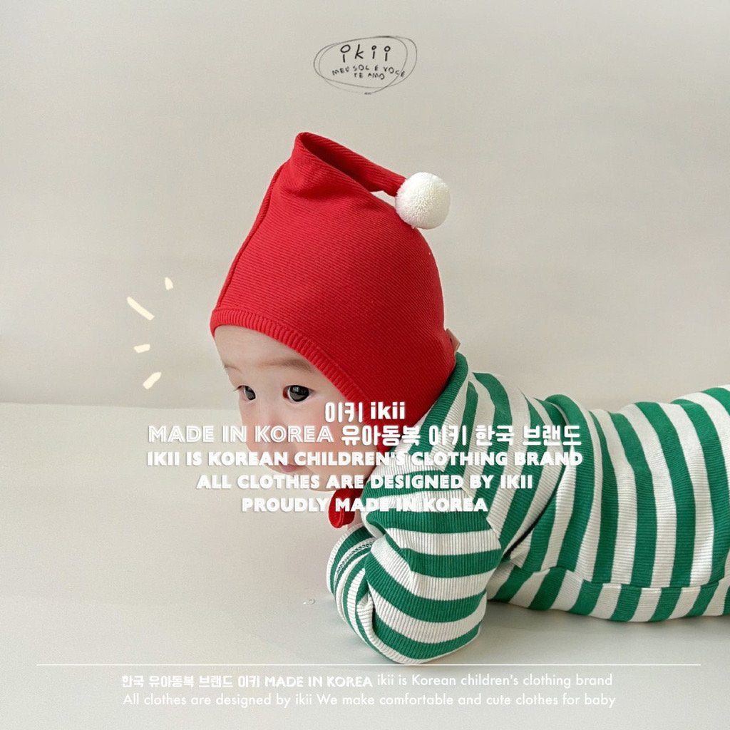 Add a cheerful touch to your baby’s first holiday season with the ikii Christmas Elf 2-piece set. This playful outfit includes a soft ribbed bonnet with a white pom pom tip and a matching striped bodysuit in festive green or red. Made in Korea from cotton, it feels gentle on delicate skin and stretches comfortably for everyday wear. The front snap buttons make changing easy, while the snug fit keeps baby warm and ready for cozy Christmas photos.