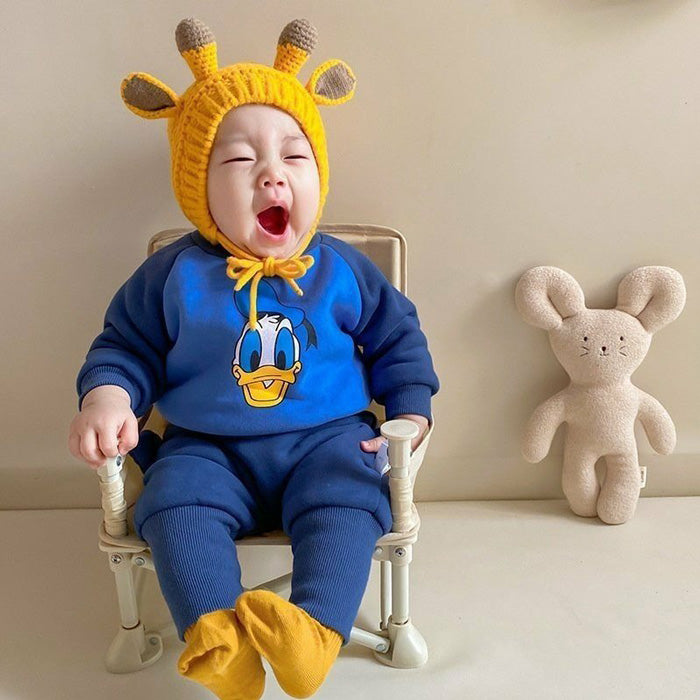 Add a fun twist to winter outfits with the MISO Giraffe Ear Bonnet! Featuring adorable giraffe ears on the hood, this hat is as cute as it is cozy. Made from warm, soft material, it keeps your little one snug during chilly days. This playful hat is the perfect way to keep your child both stylish and comfortable all season long.