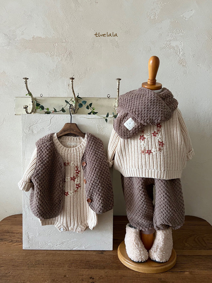 Add a touch of festive charm to your baby’s wardrobe with the THE LALA Embroidered Sweater Bodysuit. Designed with delicate floral embroidery, this bodysuit brings a soft, seasonal vibe to your little one’s outfit while keeping them cozy and comfortable all day long. The intricate floral design adds a beautiful holiday touch, making it perfect for family gatherings, holiday photos, or simply celebrating the season in style. Available in two timeless colors – warm Mocha and creamy Latte – this bodysuit is a must-have for those seeking elegance and comfort for their baby during the festive season.
