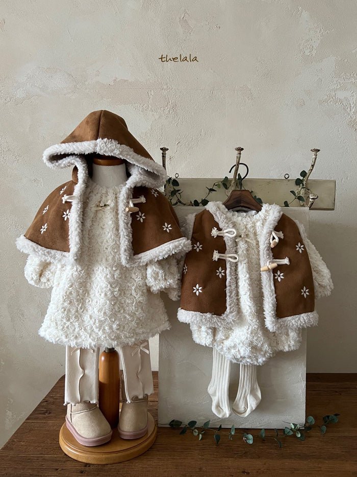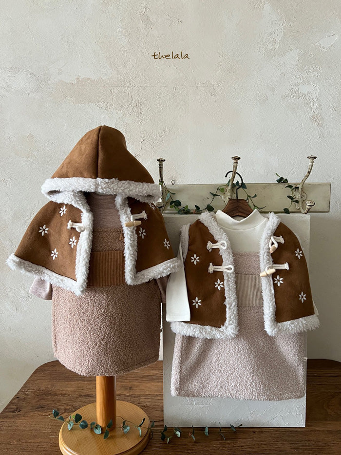 Wrap your little one in warmth and whimsy with the THE LALA Forest Embroidered Sherpa Cape – a must-have winter accessory that adds an extra touch of magic to her cold-weather wardrobe. This cape features charming forest-themed embroidery, making it the perfect blend of cozy comfort and enchanting style. Whether it’s for holiday gatherings, family outings, or a stroll through winter wonderlands, this cape will keep her snug while making her look like a little woodland princess.